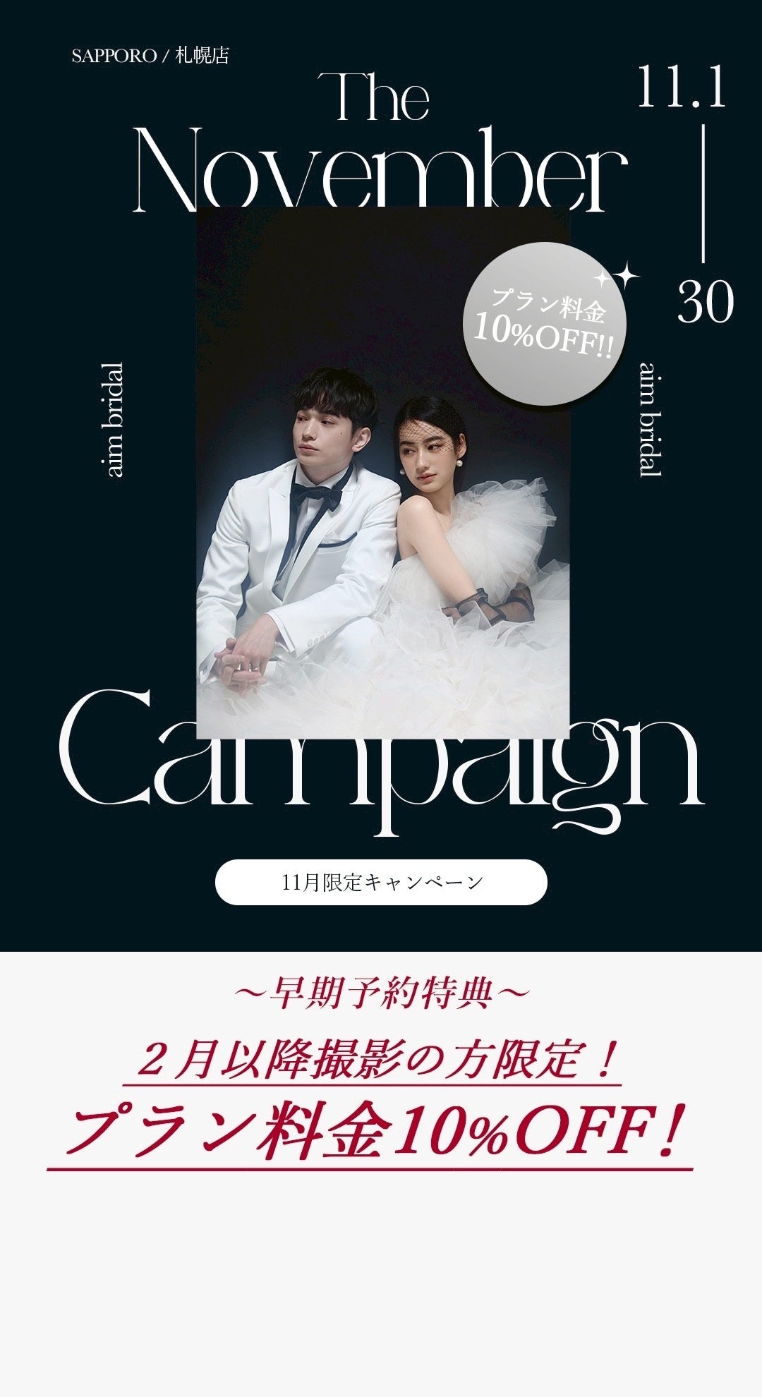 1,早期予約特典!プラン料金10%OFF (2月以降撮影の方限定、対象プラン有り)