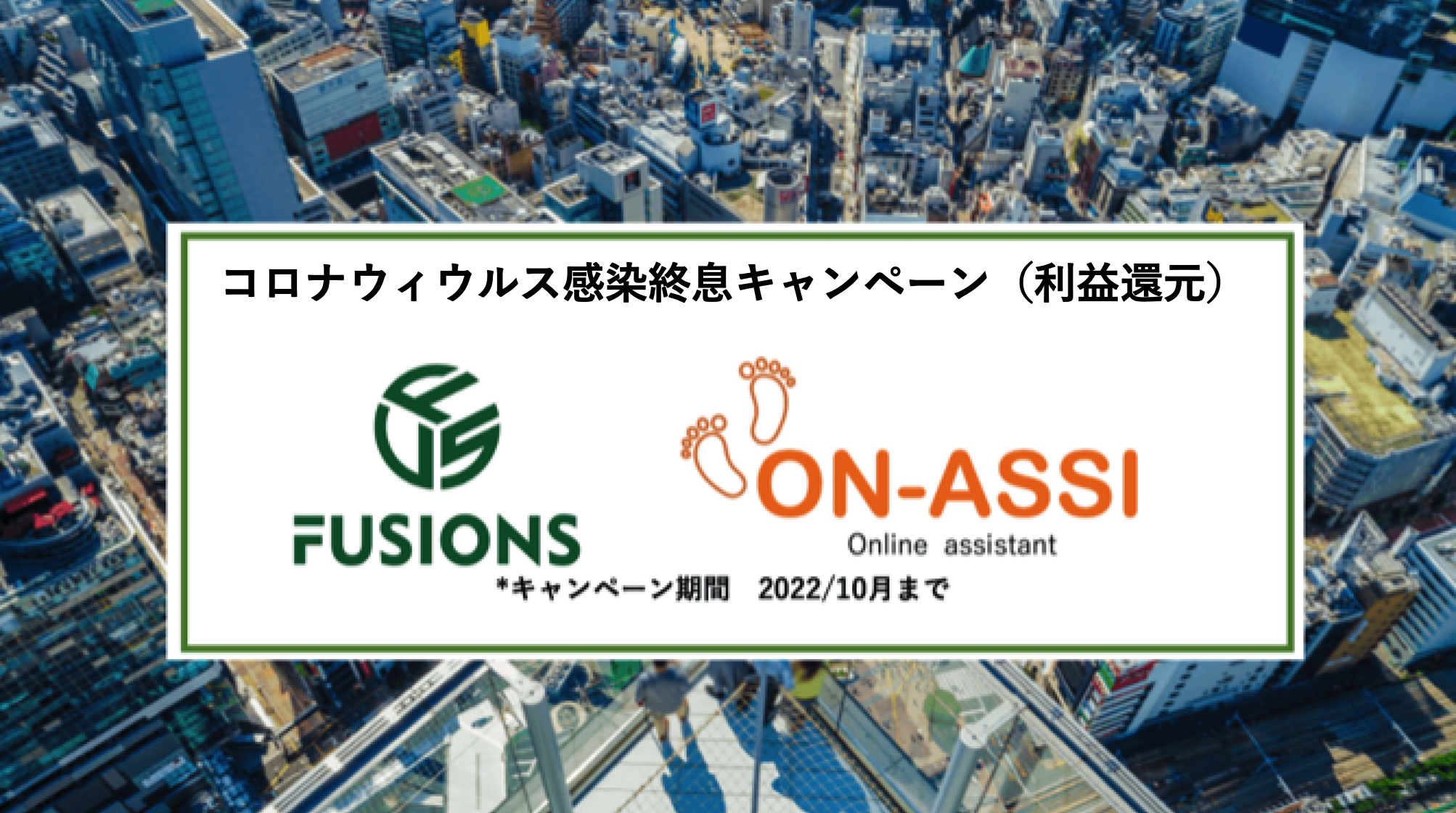 株式会社FUSIONS(東京都渋谷区)は、提供する完全リモート型オンラインアシスタントサービスの更なる拡大によりリモート勤務者を増やし、再度感染が拡大するコロナウィルス感染の終息に寄与すべく10月末までにご契約頂いたサービスご利用者様の利用料金を特別価格と致します。