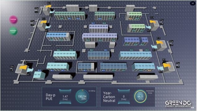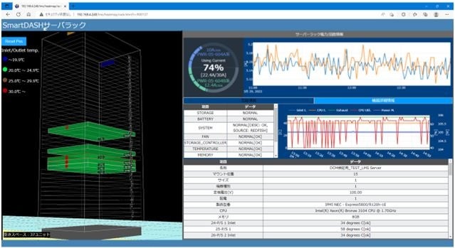 図2:「Green DC energy management」温度分布図、サーバー情報詳細イメージ