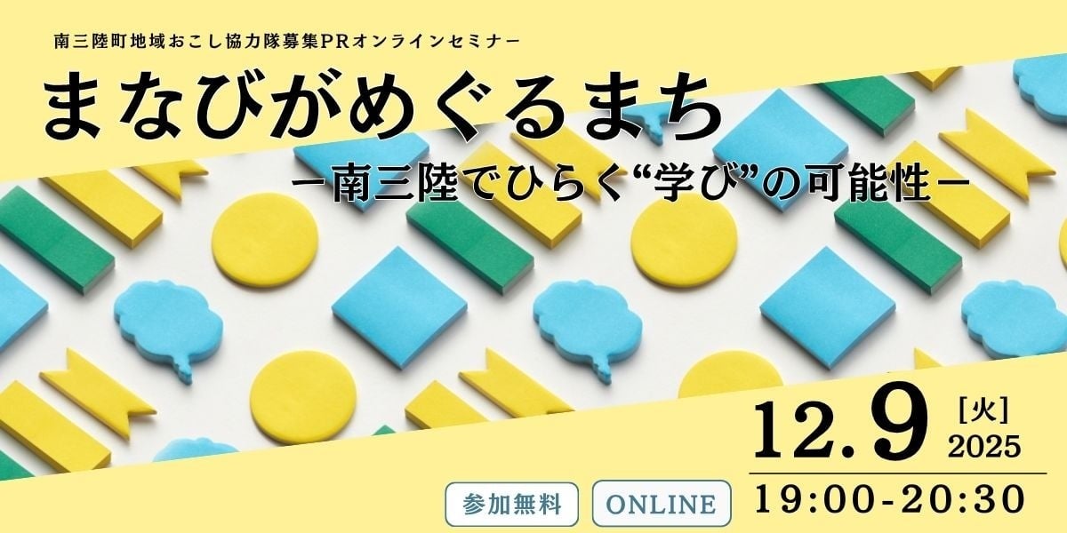 2025年12月9日(火)よりオンラインにて「南三陸町 地域おこし協力隊募集セミナー まなびがめぐるまち─南三陸でひらく”学び”の可能性─」の開催が決定しました。
