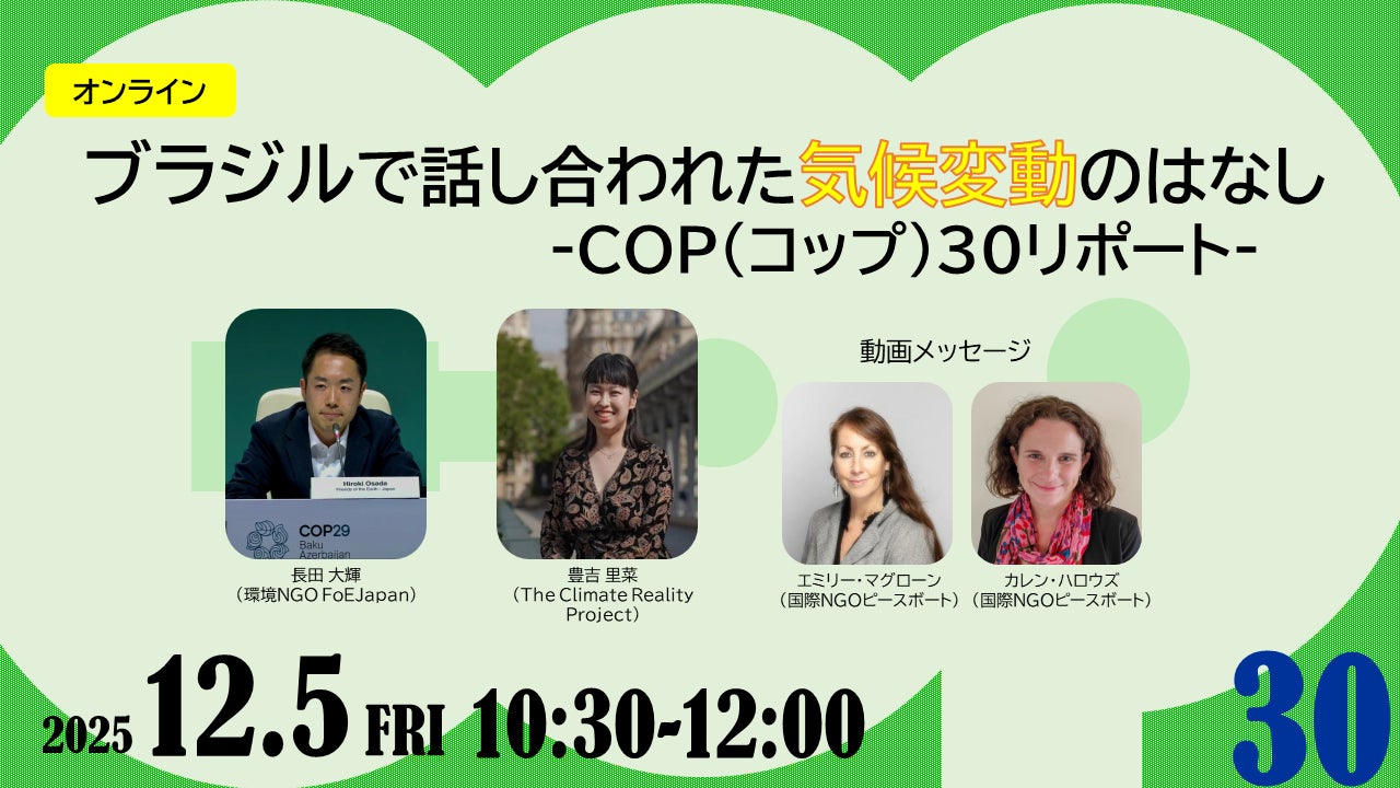 オンライン企画「ブラジルで話し合われた気候変動のはなし―COP(コップ)30リポート―」