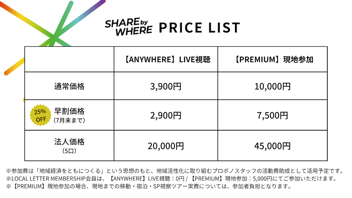 今回の参加費は「地域経済をともにつくる」という思想のもと、地域活性化に取り組むプロボノスタッフ(学生及び社会人)の活動助成費として活用予定です。