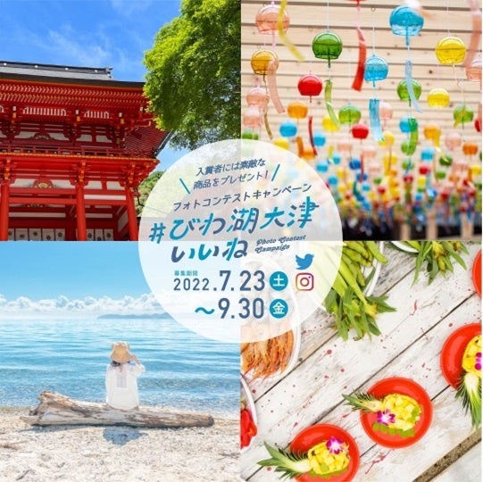 絶景写真や心弾む身近な風景写真、夏の絶品グルメ写真など、夏ならではの\おぉーっ♥いいね!/を撮影してSNSで気軽に応募してくださいね。応募作品の中から「最優秀賞」「優秀賞」「入賞」の合計23作品を選定。豪華賞品をプレゼント!(びわ湖大津観光協会HP:https://otsu.or.jp/information/otsuiine-photocon)