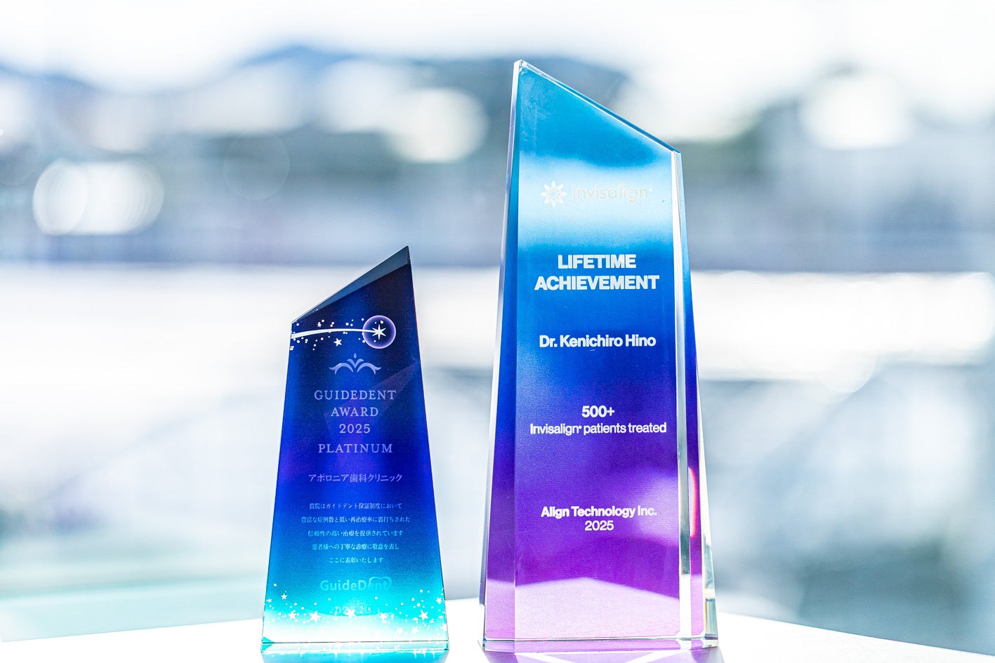 医療法人仁徳会 アポロニア歯科クリニック(高知県高知市)は、アライナー矯正システム「Invisalign(インビザライン)」より「Lifetime Achievement」を受賞、さらに株式会社ガイドデントが実施する「ガイドデントアワード2025プラチナ 」に選定されました。