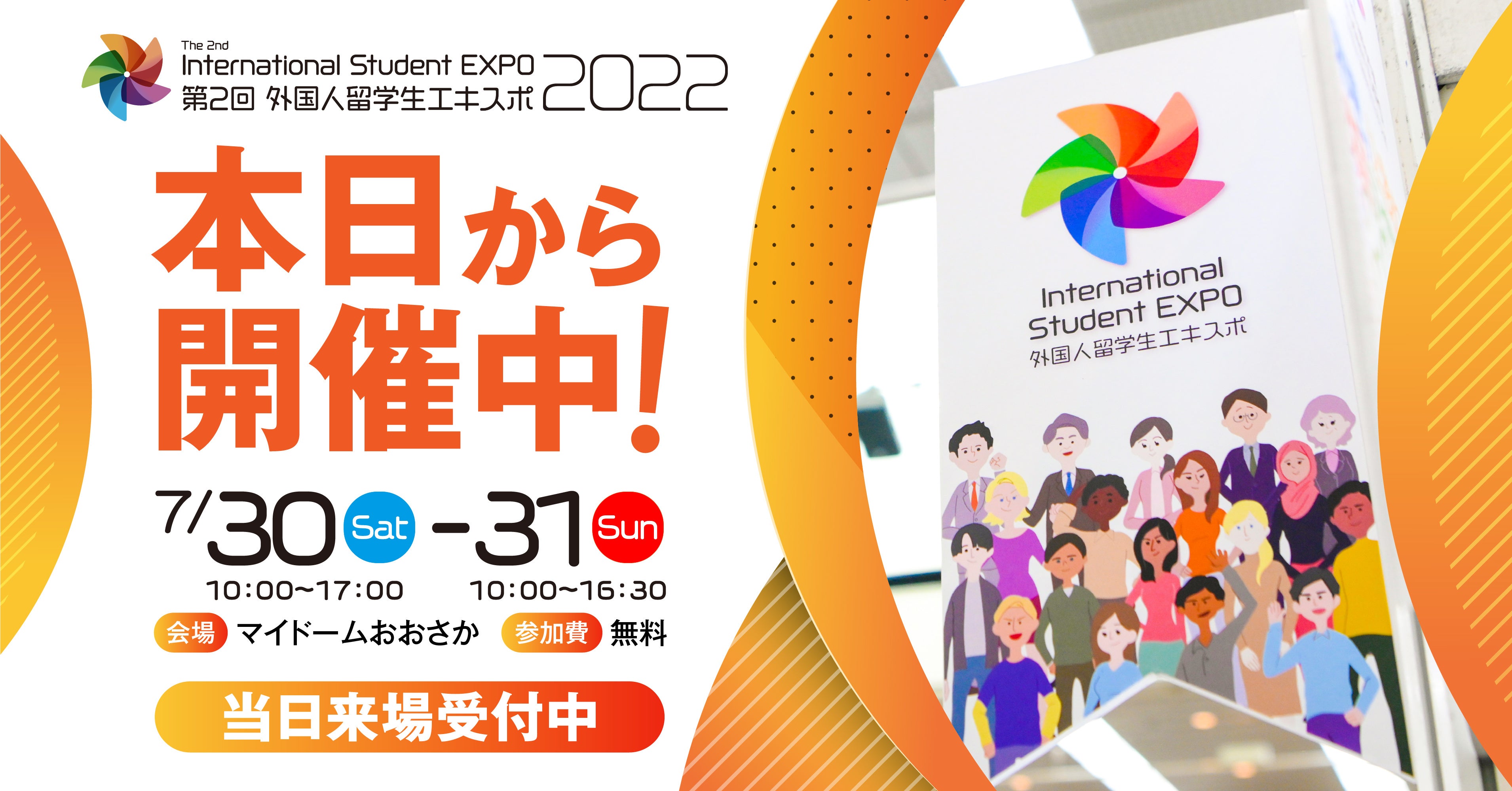 後援 :文部科学省、(公社)2025年日本国際博覧会協会、(一社)大阪府専修学校各種学校連合会、(一社)KIX泉州ツーリズムビューロー、(独)日本貿易機構(ジェトロ)大阪本部、(特非)大学コンソーシアム大阪、留学生支援コンソーシアム大阪、水都大阪コンソーシアム、日本郵便(株)近畿支社