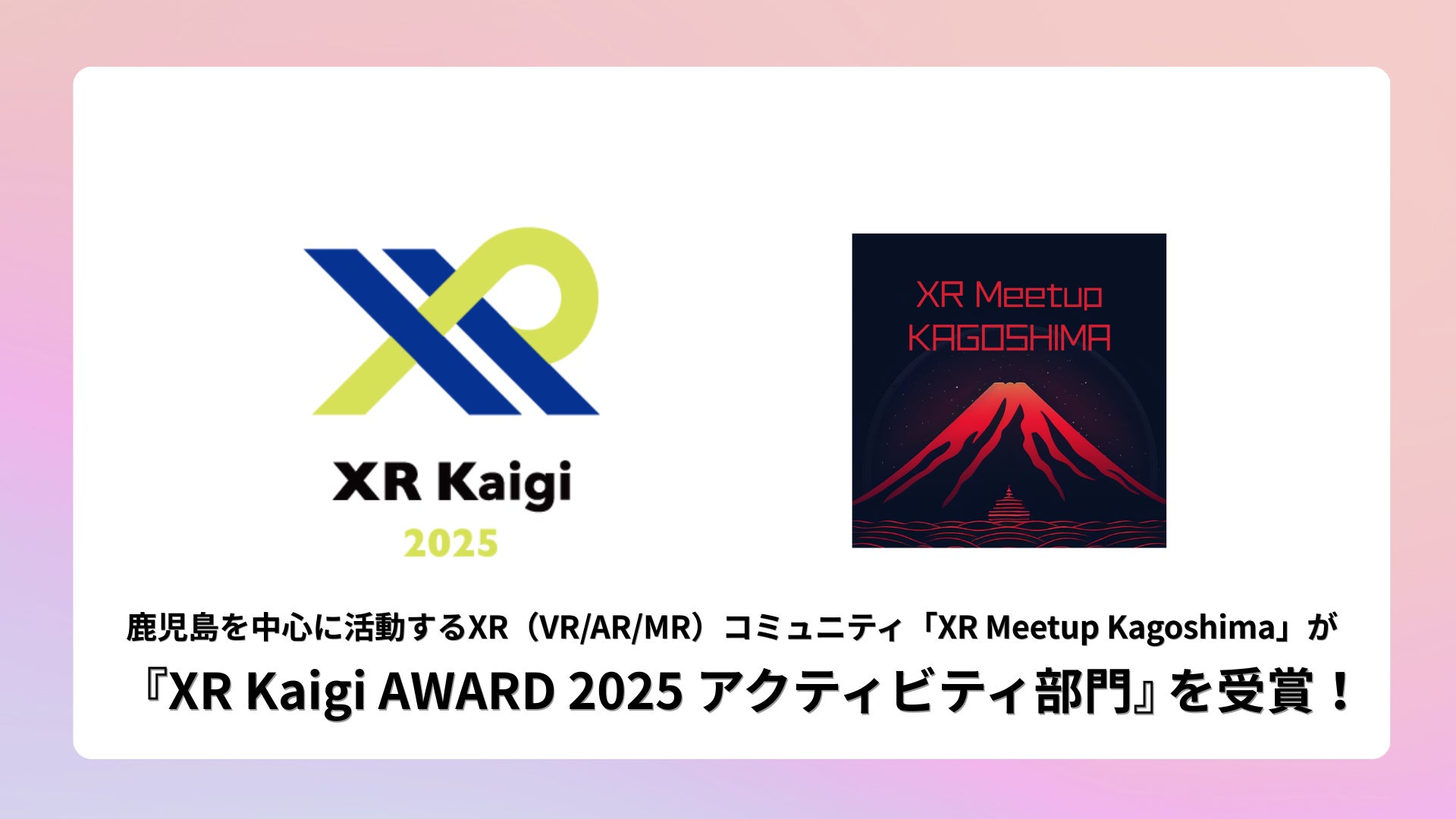 鹿児島県を中心に活動するXR(VR/AR/MR)コミュニティ「XR Meetup Kagoshima」は、2025年12月1日に行われた国内最大級のXRカンファレンス「XR Kaigi 2025」において、XR業界への貢献やコミュニティ活動を評価する「XR Kaigi AWARD 2025 アクティビティ部門」を受賞いたしましたことをお知らせいたします。