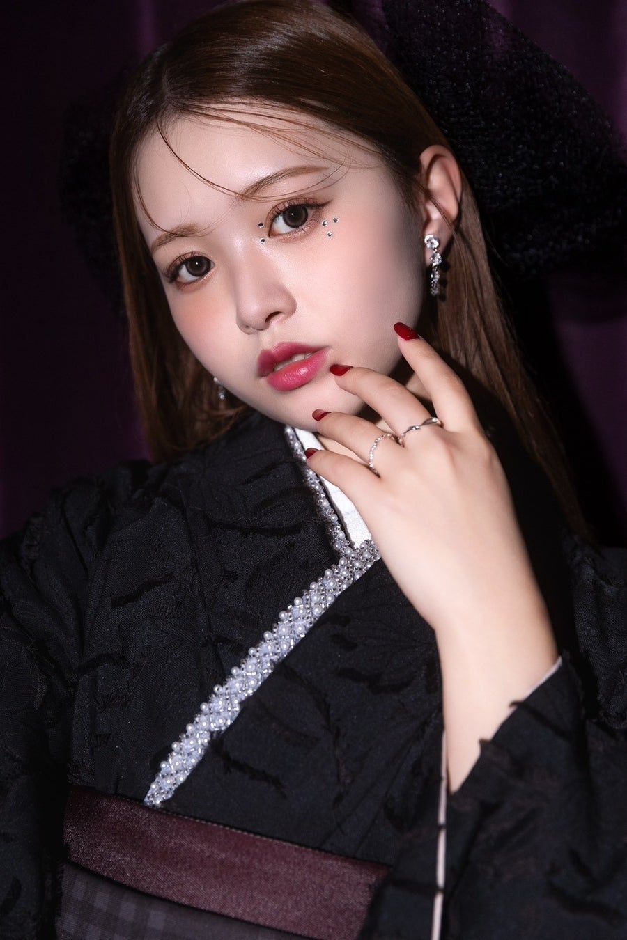 伝統的な和装のアップスタイルとは一線を画す、現代的なムードです。