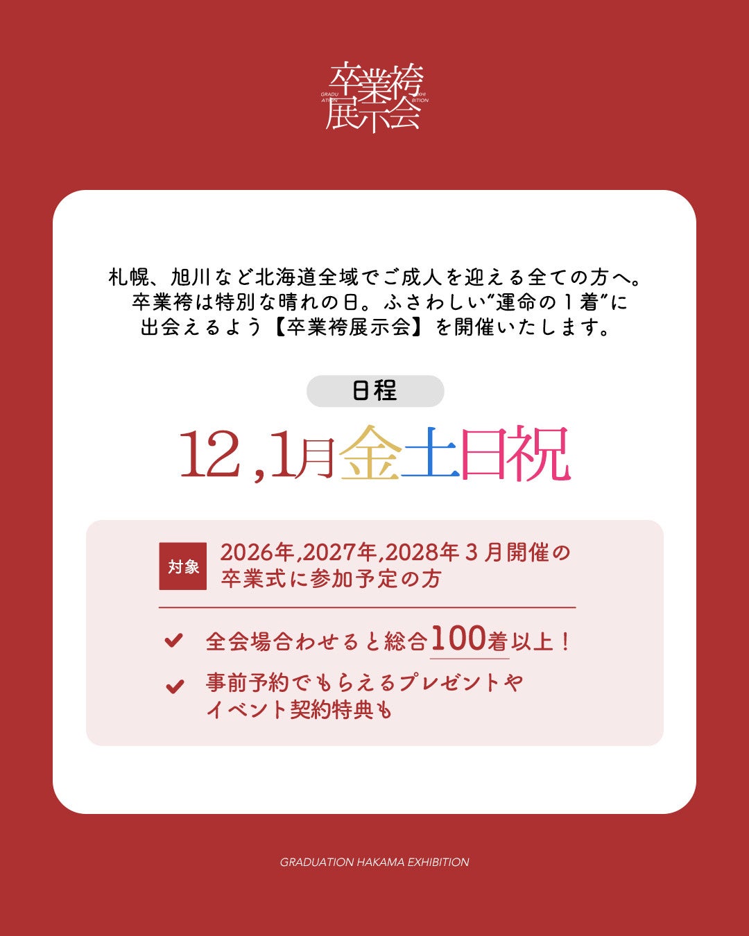 【2025年12,1月土日祝】札幌卒業袴展示会開催