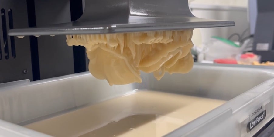 造形後は、余分なレジン液の洗浄、造形物を支えるサポート材の除去、強度を高めるための光重合といったプロセスを経ます。コピーデンチャーには自然な色合いを再現するカラーリングを施し、マルチレイヤー(多層構造)の場合は精巧な組み立てを行います。