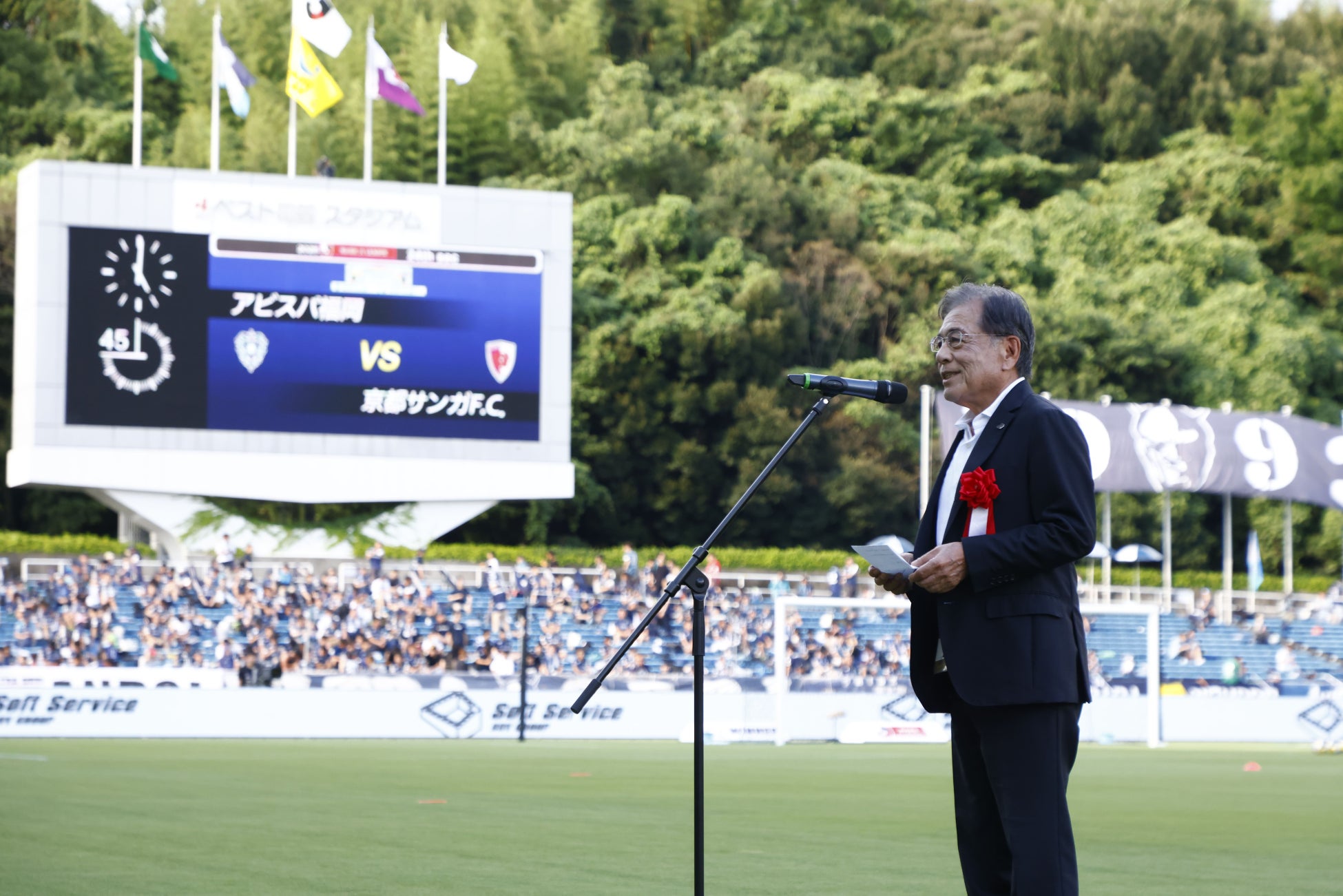 2025年7月21日(月)対京都サンガ戦試合開始前にアビスパ福岡様よりプレミアムユニフォーム・パートナーのセレモニーを開催していただきました。