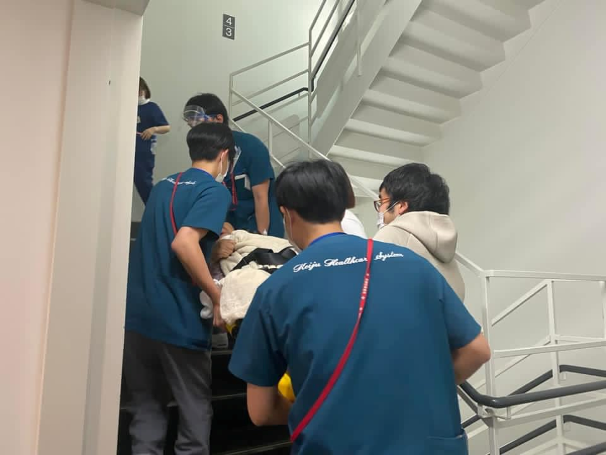 ◆ 患者113名の人力搬送: エレベーター停止の中、耐震構造の建物から免震構造の建物へ職員総出で患者を搬送し、より安全な環境で医療を継続。