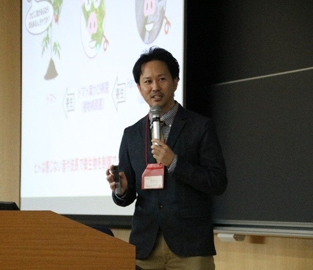 植物病理学の視点から、世界の食料の10~15%が植物の病気によって失われている現状と、80%が「カビ」による病気であることからその解決策について解説しました。化学農薬に代わる持続可能な防除法として、病原菌を食べる「菌寄生菌」や、植物の免疫を活性化させる微生物の研究を紹介。更に、カビが赤色の光に反応して活動リズムを変える特性を利用して強力な寄生菌を作る研究や、音(振動)への反応の有無を探る最新の研究アプローチについても触れました。良いカビの力を引き出し、商品化や食料問題解決に貢献したいと展望を語りました。