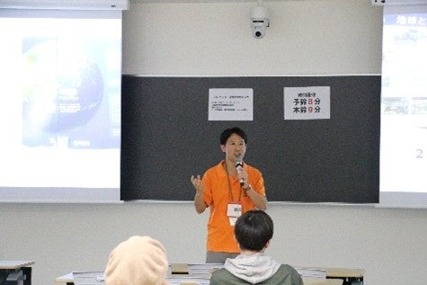 大阪府立懐風館高等学校の卒業生として、母校の生徒募集停止という厳しい現状に触れ、後輩たちのために「高校生が社会貢献できる場」を残したいという切実な想いを語りました。生徒会長時代に全国の高校生がゴミ拾いを競い合う「スポGOMI甲子園」に参加するなど、外部と連携した活動に尽力した経験を紹介しました。一方で、現在の地域社会には高校生が個人で気軽に参加できるボランティアの数が不足している課題を指摘。学生個人の力だけでは解決が難しい現状を訴え、プレゼン参加者に対し、若者が社会とつながる新たな仕組みづくりへの協力を強く呼びかけました。