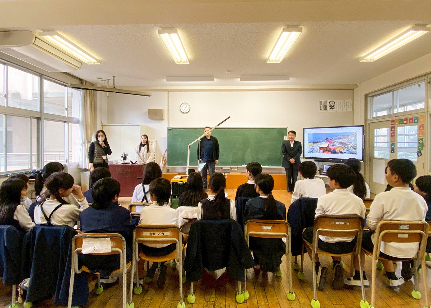 授業では、北西九州の海で深刻化する海洋プラスチック問題についても説明しました。