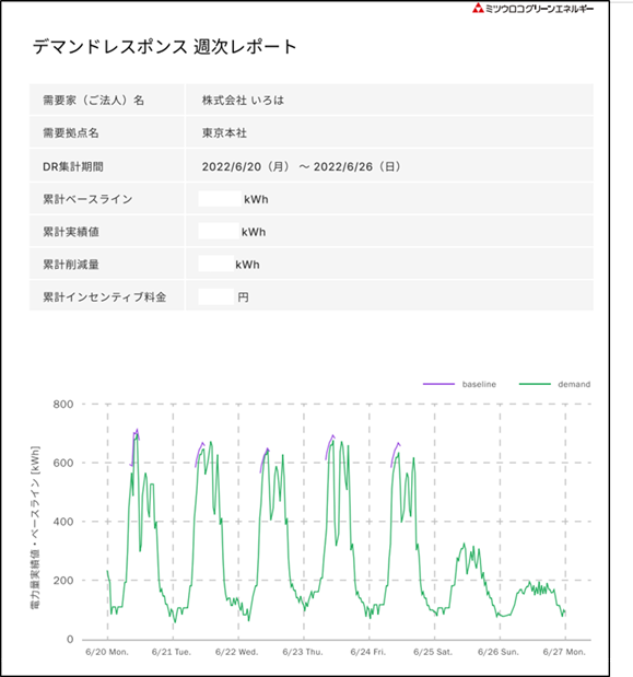 お客様向けに月次で発行しておりますDR実施結果のレポート内容と送付時期が、週次に変更になりました。また、レポートの視認性の向上も実現したことにより、お客様のDR実施結果を短期間に把握できることで、電気の使い方の見直しが実施しやすくなりました。