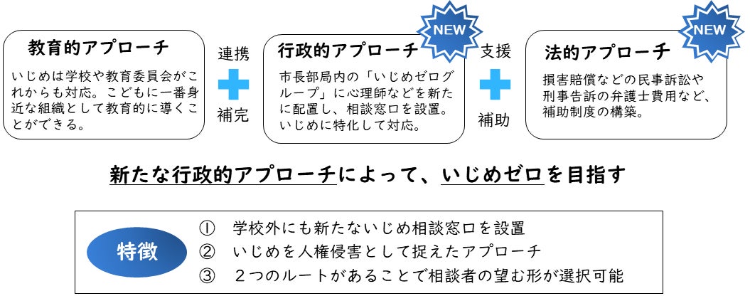 学校や市教育委員会の対応に、市長部局が補完することで、本市におけるいじめへの対応力をより高めていきながら、同条例の目的である「全ての児童等が安心して生活し、健やかに成長することができる社会の実現」を目指します。