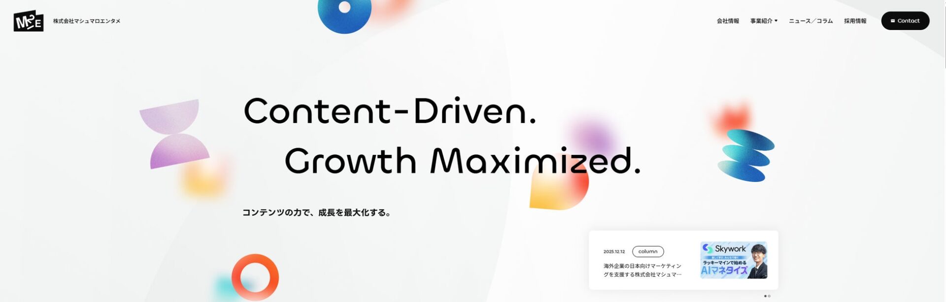 株式会社マシュマロエンタメ(Marshmallow Interactive Entertainment Co., Ltd./本社:東京都渋谷区、以下 当社)は、2025年12月、コーポレートサイトを全面的にリニューアルするとともに、ミッション・ビジョンを新たに策定いたしました。
