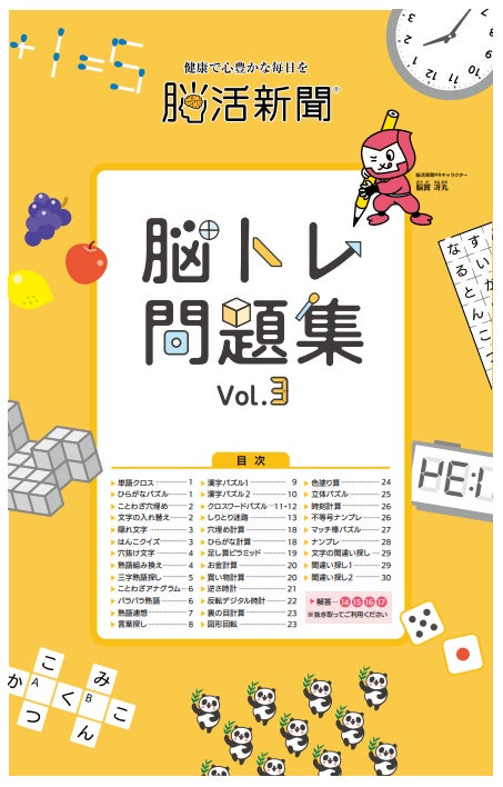 西日本新聞で好評連載中の「脳活新聞」。その人気企画から生まれた脳トレ問題集は、Vol.1・Vol.2に続く「脳トレ問題集Vol.3」が新登場しました。