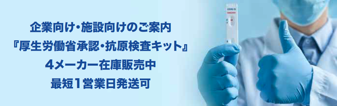 2022年8月1日時点でご案内の商品、価格帯、納期は以下の通りです。 商品:4メーカー・4種類の抗原検査キット(厚労省認可・体外診断医薬品) 価格:商品、個数による(都度お見積りさせて頂きます) 納期:最短当日出荷可能(通常翌営業日~3営業日) ※午前中ご注文の場合に限る。商品による。