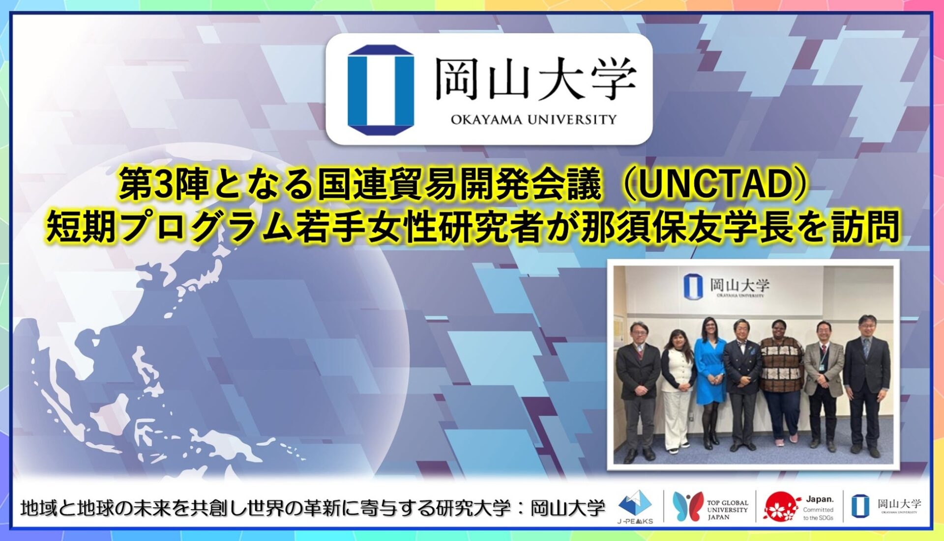 ・【岡山大学】国連貿易開発会議(UNCTAD)公式サイトで本学との共同プロジェクト「途上国からの若手女性研究者のための共同研究・研修コース」の紹介ページが開設されました!