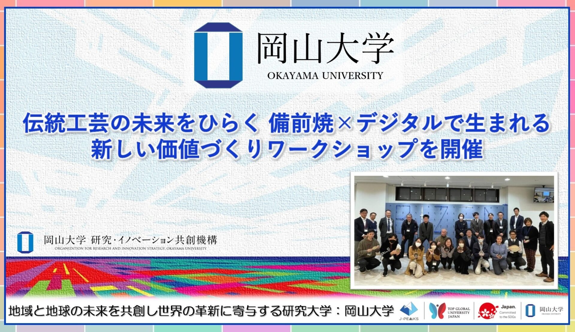 国立大学法人岡山大学(本部:岡山市北区、学長:那須保友)は2025年11月25日、本学津島キャンパスの共創イノベーションラボ KIBINOVE(きびのべ)にて、おかやまデジタルイノベーション創出プラットフォーム(OI-Start)との共催で「伝統工芸×web3で未来を創る」をテーマにしたアイデア創出ワークショップを開催しました。