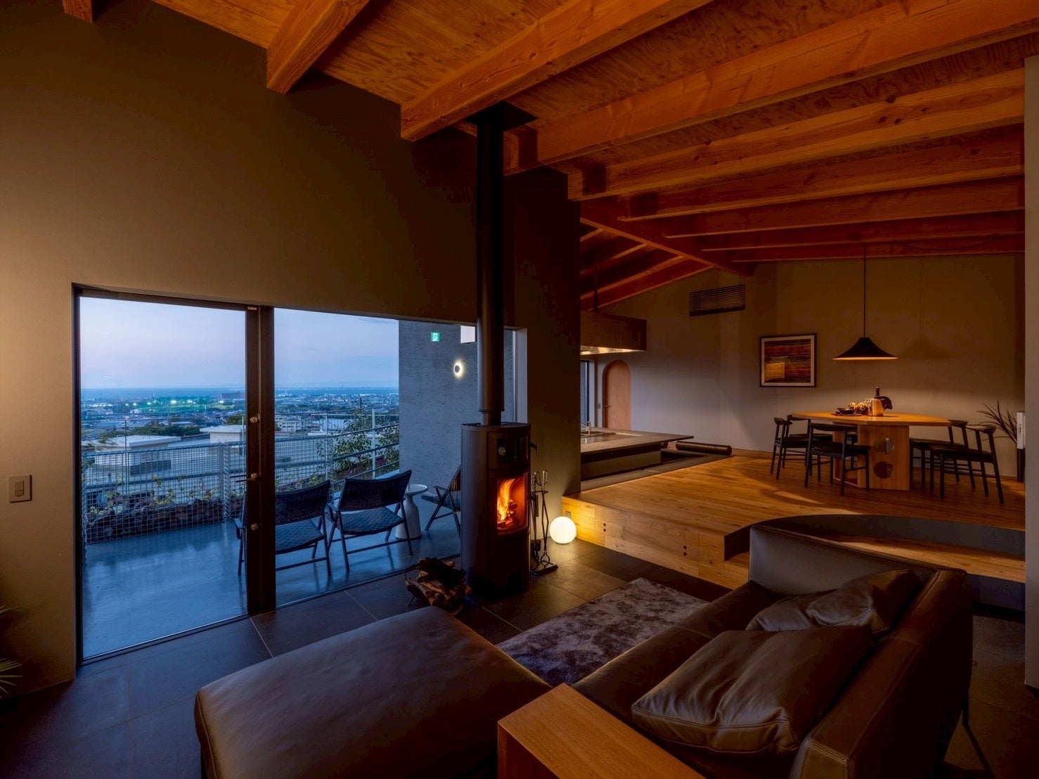 昼は陽光に包まれ、夕暮れ時には茜色の空、夜は星の瞬きと街夜景に包まれる非日常の体験を、静けさの中で、ゆっくりとお愉しみください。