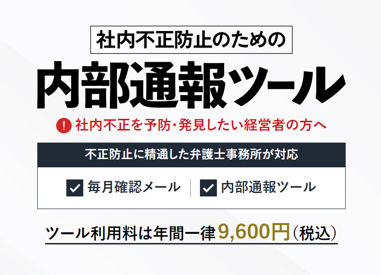 アトム法律事務所の「内部通報ツール」は、社員数に関わらず、一律9,600円(税込)。