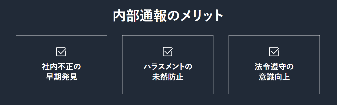 また、社員が通報できる窓口があることで、ハラスメントの未然防止やコンプラ意識の向上効果も見込めます。