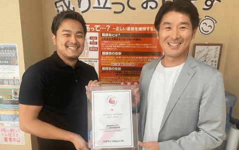 この度、東急SレイエスFCのオフィシャルパートナー企業として一緒に健康産業を盛り上げていくことになりました。多くのサッカー選手や関係者の方々に整骨院のすばらしさを知っていただける機会でもあり、地域の方が本当に求めている「健康」とは何なのかを模索するいい機会をいただけたと思っています。今後とも両社の企業価値を向上しながら、健康が持続できる社会づくりに貢献していきたいと考えております。