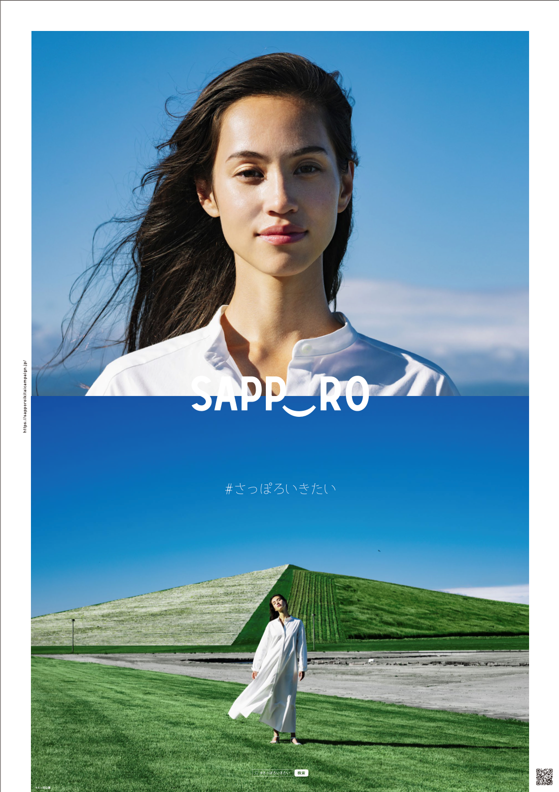 CM「空・妄想」篇 でも登場するモエレ沼公園に、水原さんが実際に来札し撮影した『#さっぽろいきたい』キャンペーンの新しいポスターを本日より公開しました。さらに、今回の撮影を終えてコメント動画とメイキング映像もあわせて公開いたします。札幌の風景に溶け込みながら、モエレ沼公園の自然を堪能している水原希子さんをご覧ください。