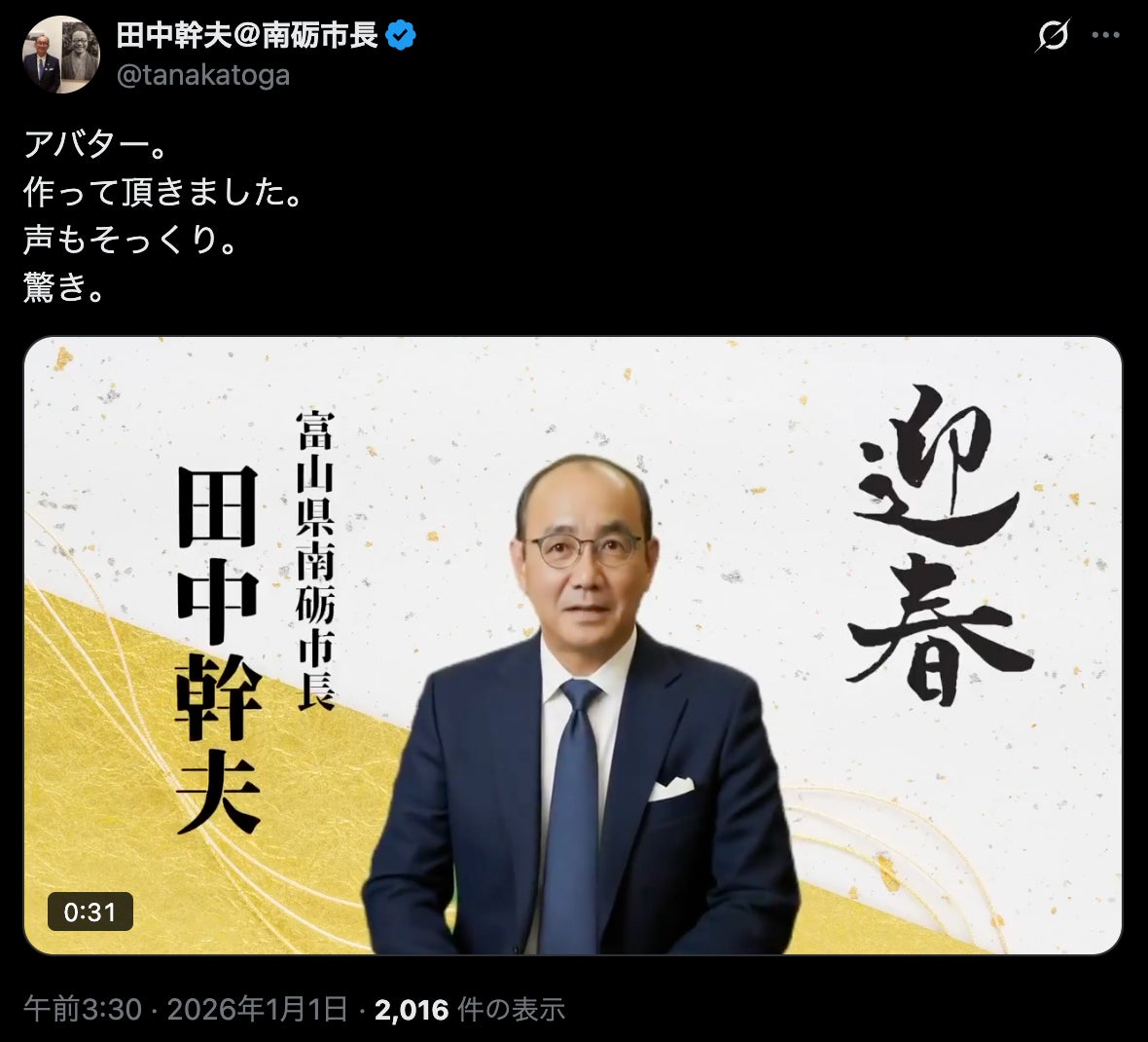 田中市長は、SNSやデジタルメディアを活用した情報発信にも前向きで、市政の考えや地域の魅力を自らの言葉で伝え続けています。近年ではAI動画を活用した年頭所感の発信にも挑戦し、自治体広報・自治体DXの新たな可能性を示しました。
