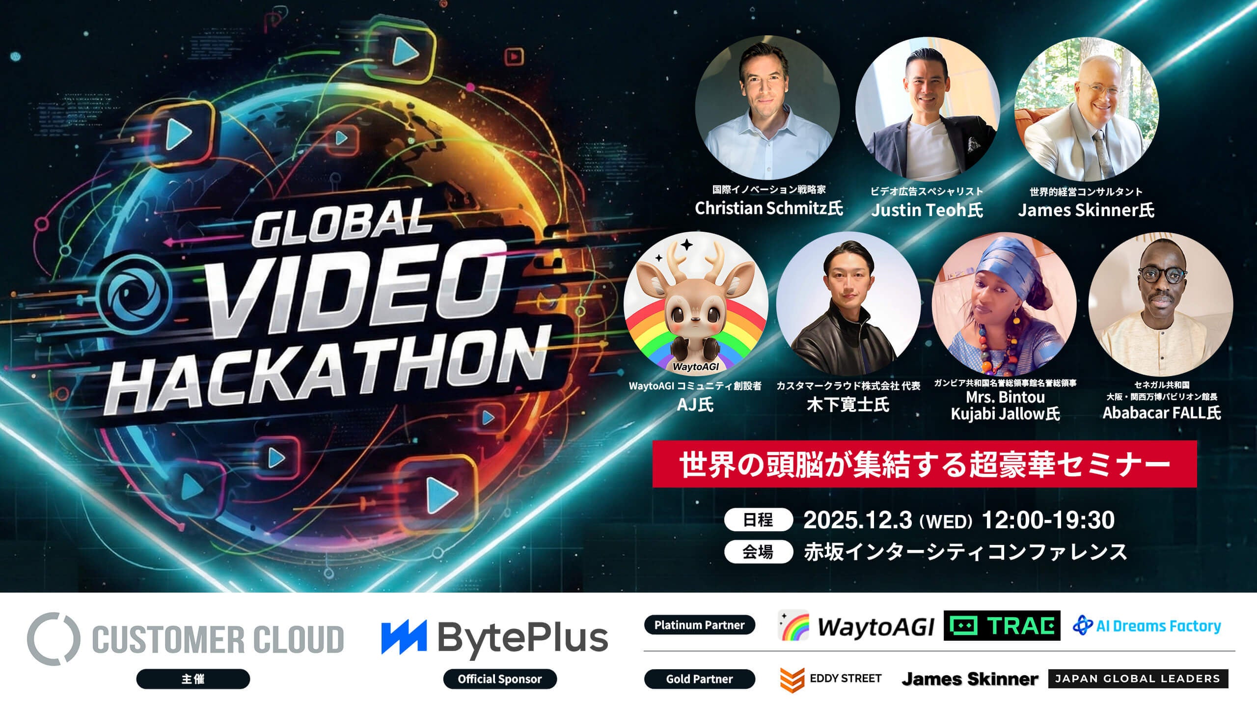 「Global Video Hackathon 2025」は、世界最大級のAI基盤を提供する BytePlus、次世代AI開発環境として注目される TRAE、そして 900万人の会員を擁する世界最大級AIコミュニティ WaytoAGI と連携し、世界中のクリエイターやエンジニアが参加する国際AI映像ハッカソン(運営:カスタマークラウドメディア事業部)です。