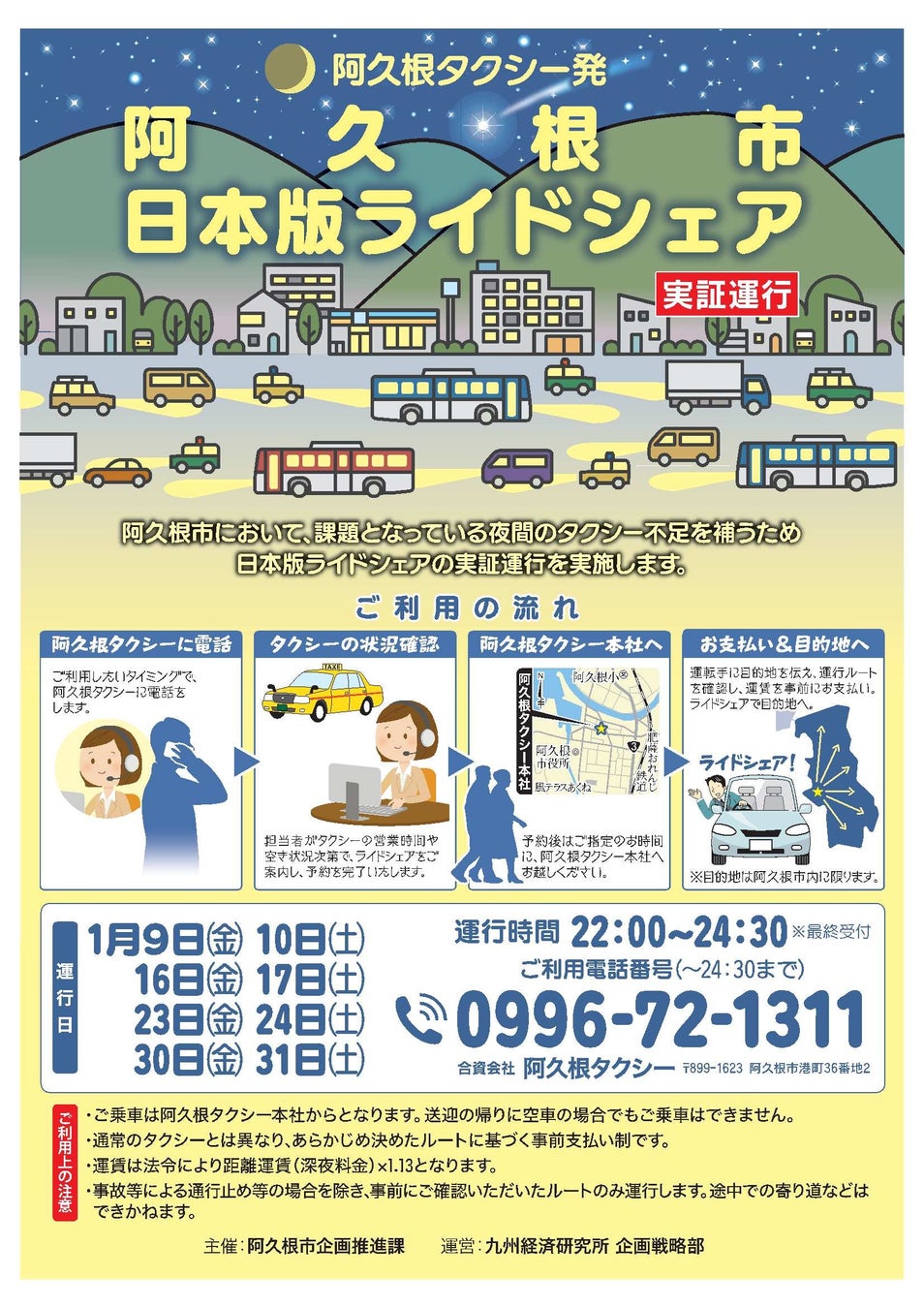 阿久根市では、令和8年1月9日から「日本版ライドシェア」の実証運行をおこないます。