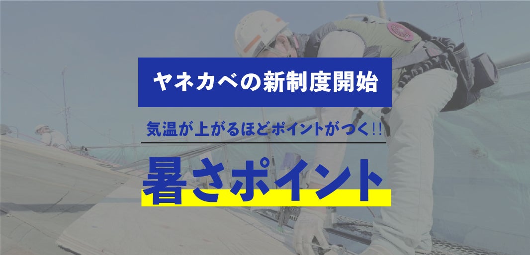 ヤネカベは2010年のサービス開始から今年、累計施工件数が2万5千件を突破しました。多くの方に選んでいただけている理由の1つには高品質施工を提供する正社員の職人「現場革命部」の活躍があります。今年は、例年よりも暑さが厳しいことが予想され、6月の後半には35℃以上の猛暑日が続きました。職人が作業する屋根の上は、日光を遮るものがないため、屋根の表面温度は70℃を超えます。そんな環境下でも丁寧に工事をする現場革命部の頑張りを報いたいと今回のポイント制度を考案しました。