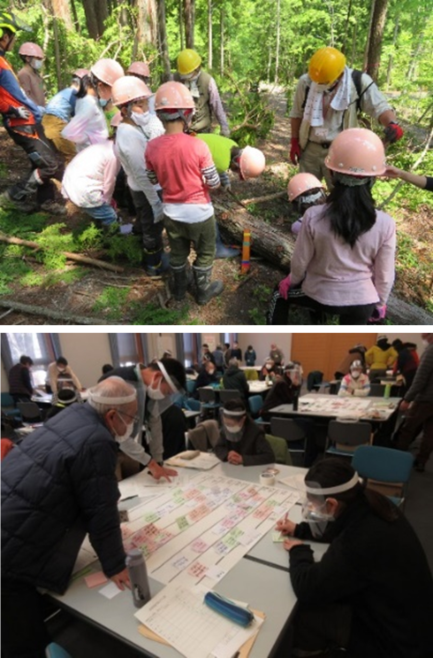 「森づくり体験学習」プログラム 林業のお話と間伐見学を実施中 (写真提供森林公園くつきの森)