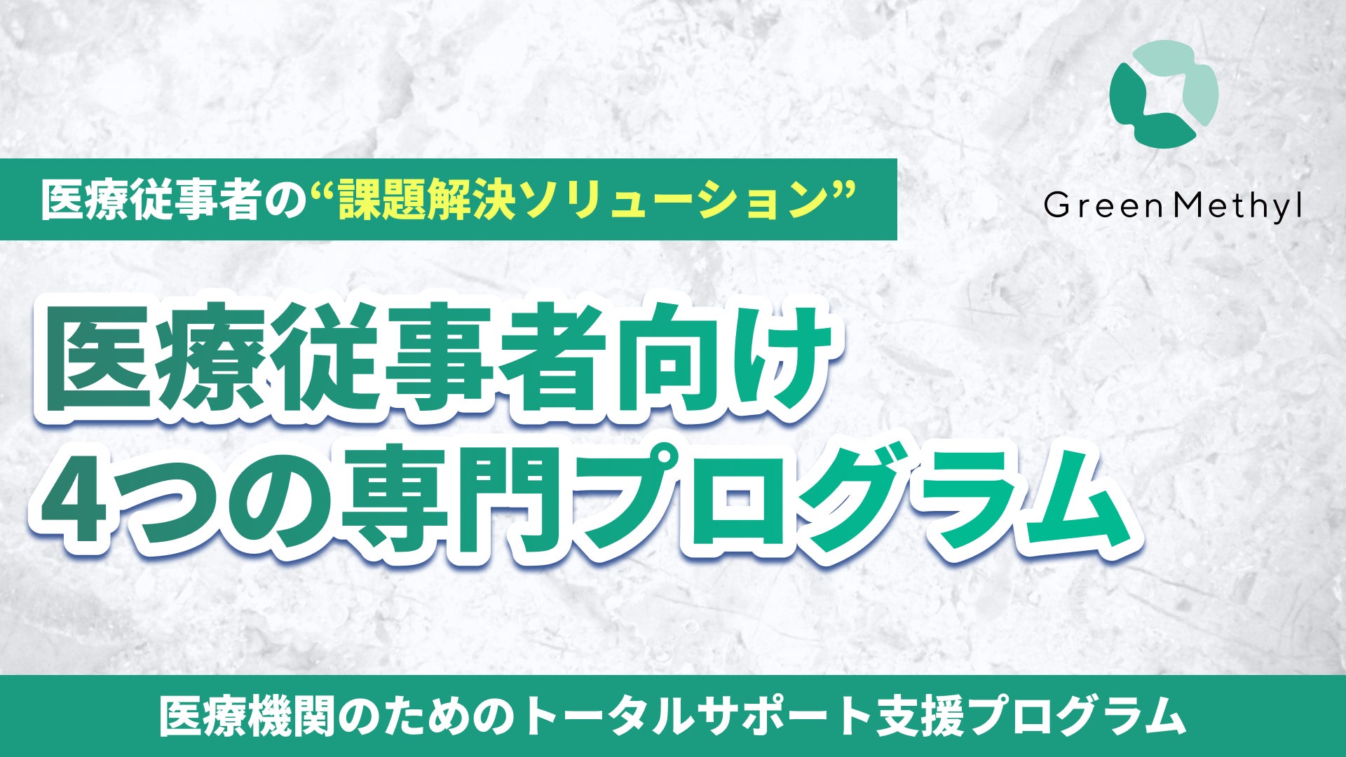 つまり、医療現場の疲弊は、個々の努力の問題というより、支援が点で存在しても、体系として接続されにくいことから起きる面がある。グリーンメチルはそのように捉えています。