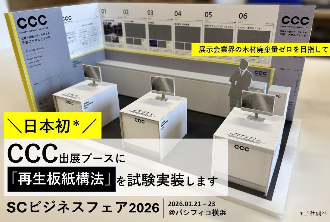 展示会ブースデザインを手掛けるスーパーペンギン株式会社(本社:東京都品川区、代表取締役:竹村尚久)は、2026年1月21日〜23日にパシフィコ横浜で開催される「SCビジネスフェア2026」において、カルチュア・コンビニエンス・クラブ株式会社様の出展ブースに、「再生板紙構法」を用いた展示会ブースを出展します。