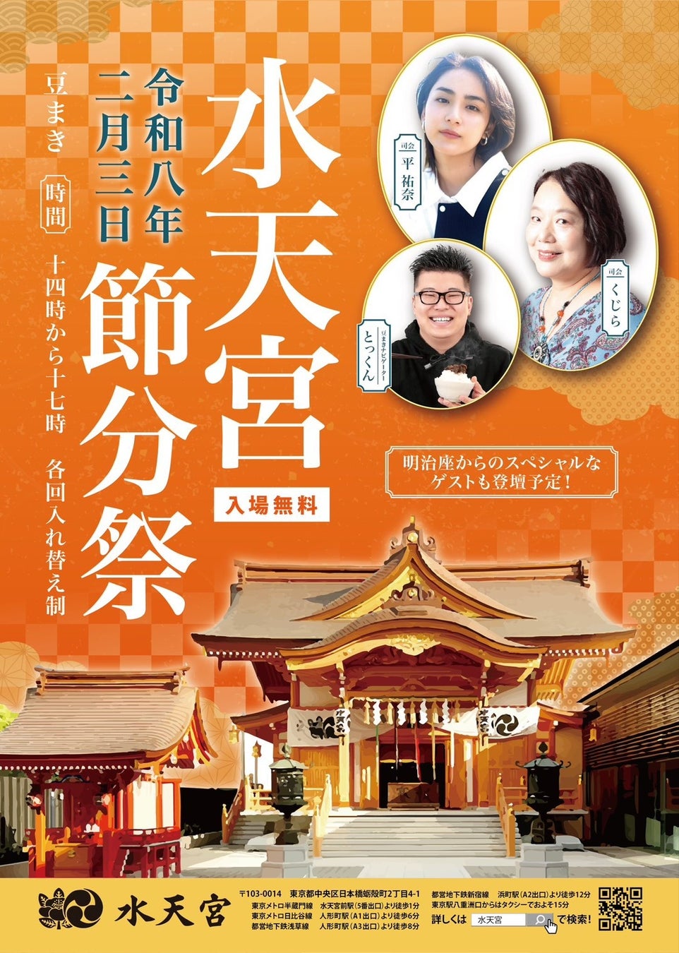 イベント詳細・豆まき参加者の事前予約:https://www.suitengu.or.jp/post/setsubun