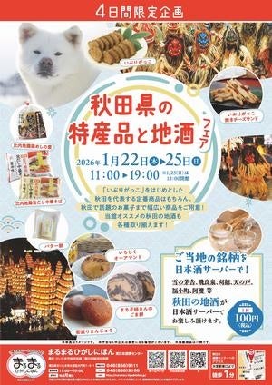 まるまるひがしにほんでは、1月22日(木)~25日(日)「秋田県の特産品と地酒フェア」を開催します。秋田名物の“いぶりがっこ”や“きりたんぽ”など、お馴染みの商品を中心に秋田の食の魅力をお届けします!また、米どころ秋田の地酒を、当館では厳選して取り揃えています。 まるまるひがしにほんへぜひお越しください!
