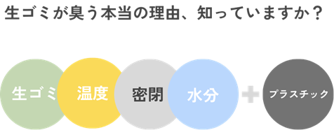 生ゴミから発生する不快な臭いは、忙しい現代の暮らしの中で大きなストレスになっています。地球温暖化の進行や、住宅の高断熱化も進む中で、この悩みはますます強くなる傾向にあります。実は、生ゴミのニオイの原因は、実は嫌気性微生物によるいたずら※。
