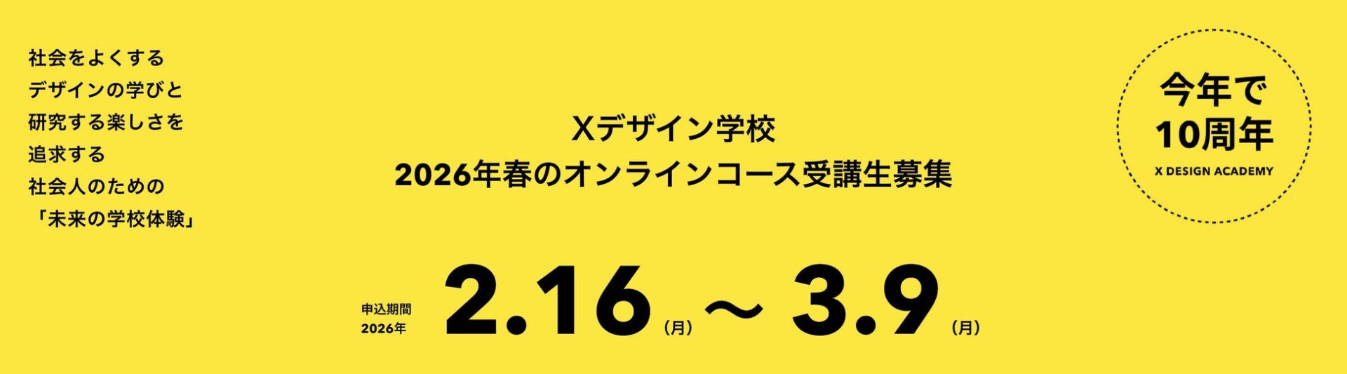 2026年は変革の年。トランプの登場、AIや技術革新、疫病の継続、産業と働き方の変革、社会構造の転換、経済の不確実性、高齢化と過疎化など。そんな変化の中で、社会人がデザインを学び、どのように考え、どのように行動したらよいか一緒に考えていければと思います。そのためにも、誰でもがデザインを活⽤する社会に向けての「学びあう体験」として、3つのコース、学びと研究を探究するX RESEARCHと多様な交流を楽しむXBARを推進します。