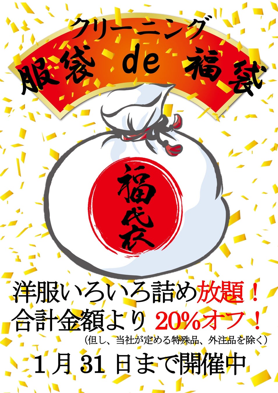 有限会社 日之出商会では、新年のご挨拶と日頃の感謝の気持ちを込めまして、既定の赤い袋にクリーニングのお品物を詰めて、持って来てくださると合計金額より20%オフにさせていただいております。