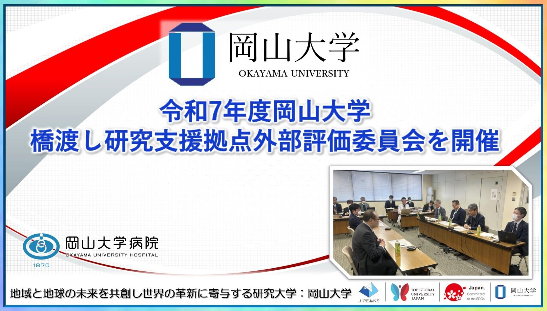 国立大学法人岡山大学(本部:岡山市北区、学長:那須保友)は2025年12月22日に、令和7年度の岡山大学橋渡し研究支援拠点外部評価委員会を、鹿田キャンパスにおいてオンラインとのハイブリッド形式で開催しました。
