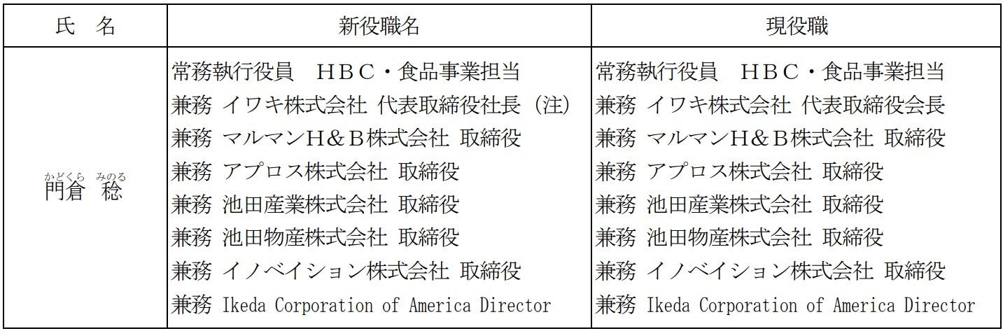 (注)門倉稔は、2026年2月18日開催予定のイワキ株式会社の第6回定時株主総会後の取締役会において、代表取締役社長に就任する予定です。
