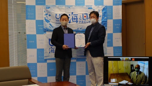 日本中に残された海にまつわる民話を発掘し、その民話のストーリーと、そこに込められた「想い」「警鐘」「教訓」を、親しみやすいアニメーションとして映像化します。当日は、ゼネラルプロデューサーをはじめとする事務局メンバーが「海ノ民話のまち」として認定した15のエリアのうちの1つである山口県岩国市の福田良彦市長を表敬訪問し、「海ノ民話のまち」認定証贈呈式を行いました。※ゼネラルプロデューサーはオンライン参加。