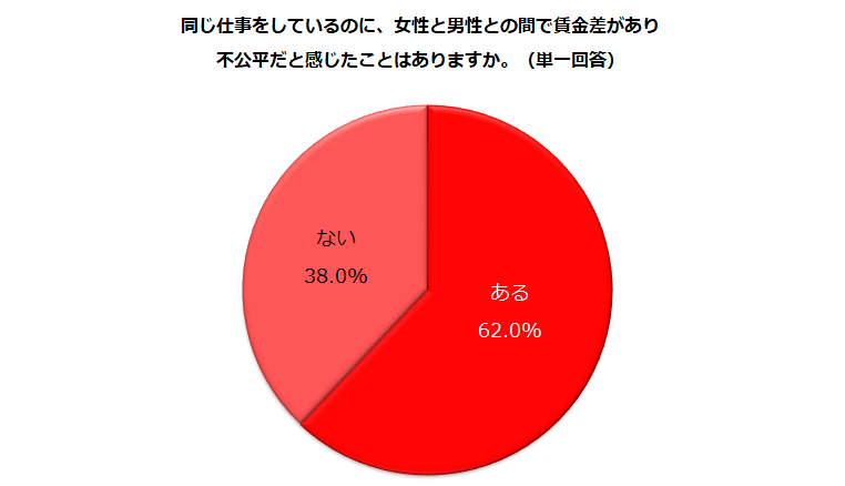 1.女性と男性との間で賃金差があり不公平だと感じたこと「ある」62.0%