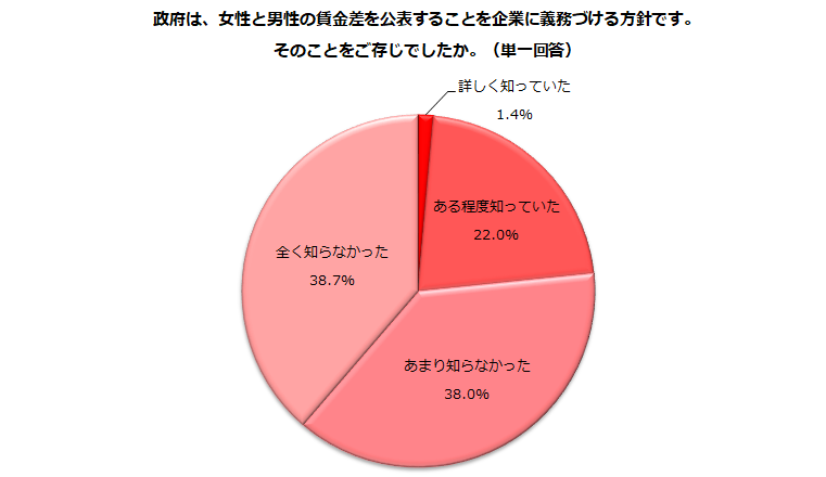 5.男女の賃金差の公表義務づけについて「全く知らなかった」38.7%