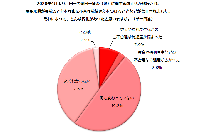 4.同一労働同一賃金関連法による変化「何も変わっていない」49.2%