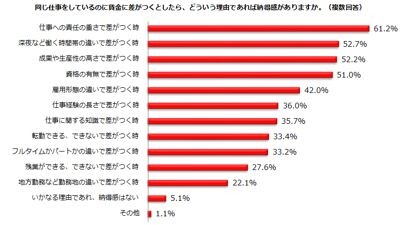 3.賃金差がつく際に納得できる理由「仕事への責任の重さで差がつく時」61.2%