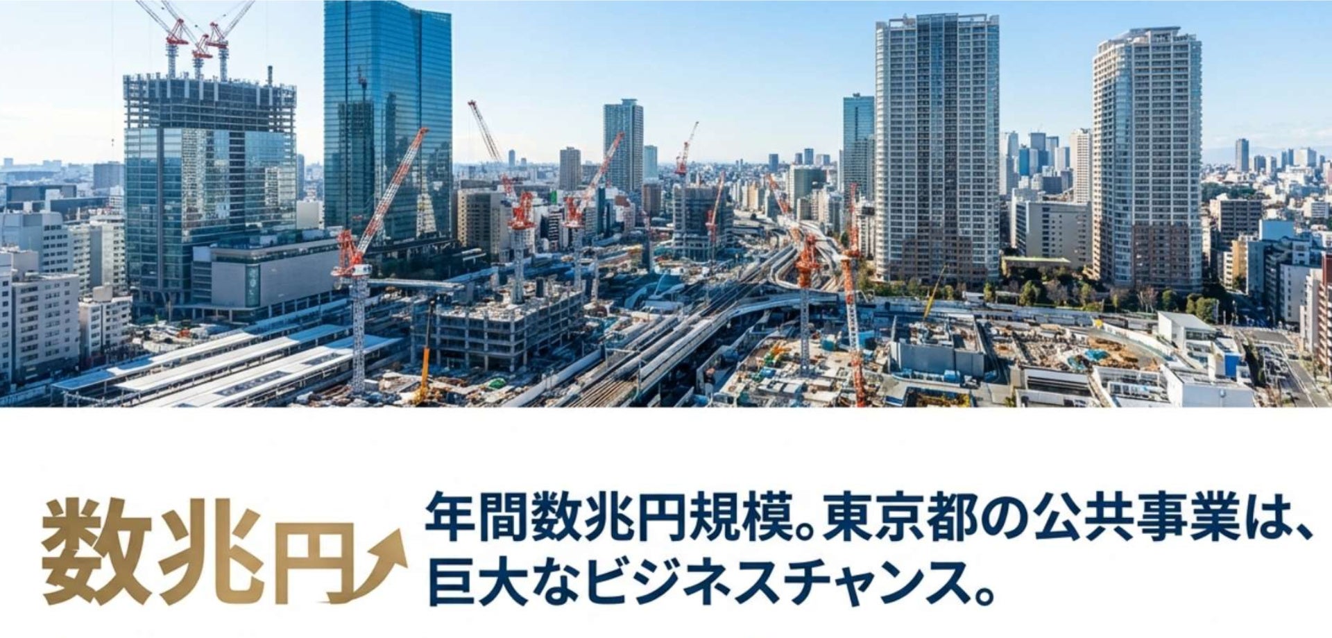 東京都(東京都電子調達システム)が発注する公共事業は年間数兆円規模に及び、中小企業にとって大きなビジネスチャンスです。さらに、東京電子自治体共同運営に参加する都下の59の区市町村でも、同様の電子入札システムを活用した案件が数多く発注され、入札市場はさらなる広がりを見せています。